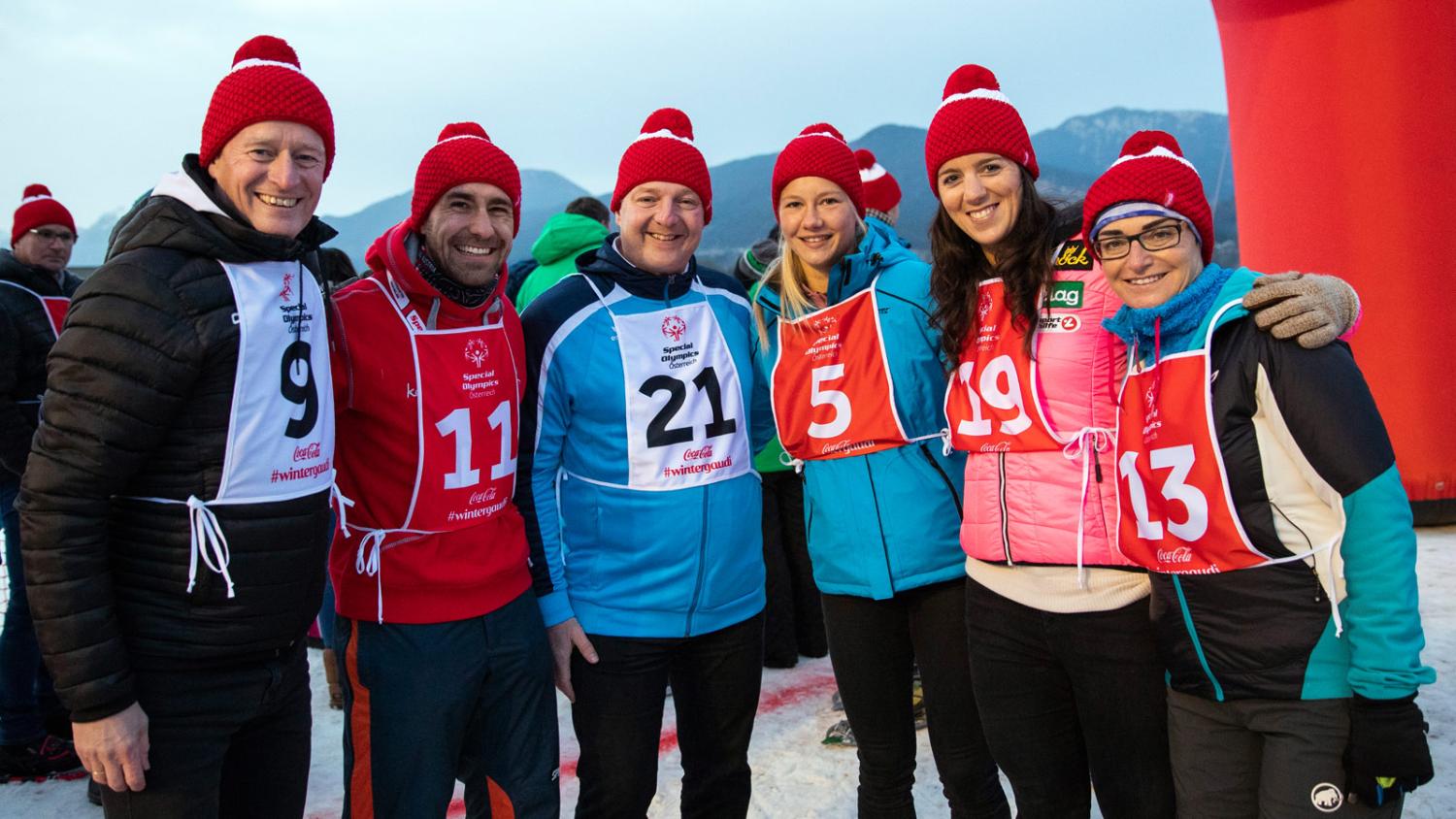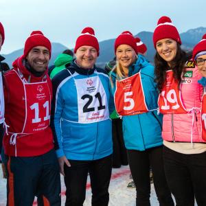 Gemeinsam liefen die Prominenten zum Erfolg, ging es doch weniger um die Geschwindigkeit als vielmehr um das gelebte Miteinander. Und auch das Publikum konnte sich beteiligen, wurde in das Warm-Up integriert und konnte so an der Wintergaudi teilnehmen.